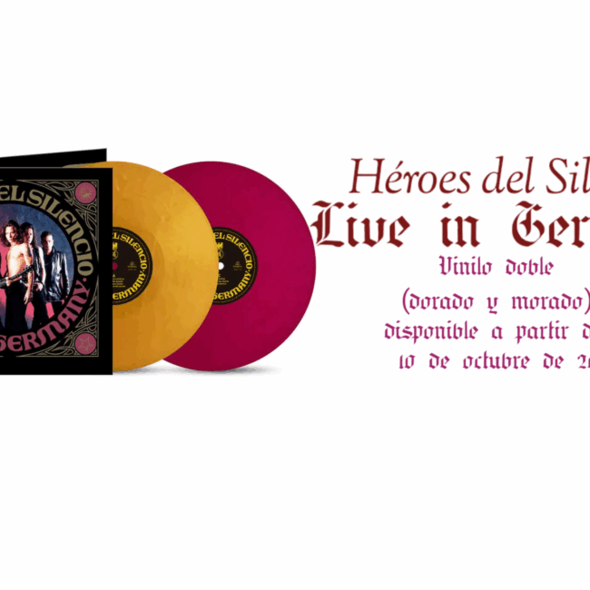 Este viernes se publica la reedición en vinilo del legendario álbum en directo ‘Live in Germany’ de Héroes del Silencio, grabado durante su gira europea de 1993. Este doble álbum, que recoge el electrizante concierto ofrecido en Koblenz, Alemania el 2 de octubre de 1993, se reedita por primera vez en un formato doble vinilo de 180 gramos en colores dorado y morado.